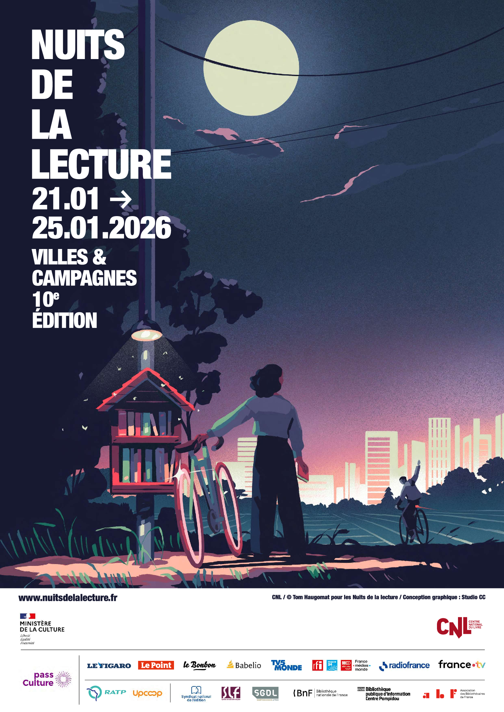La 10ème édition des Nuits de la lecture ont lieu du 21 au 25 Janvier 2026 avec le thème "Villes et Campagnes".